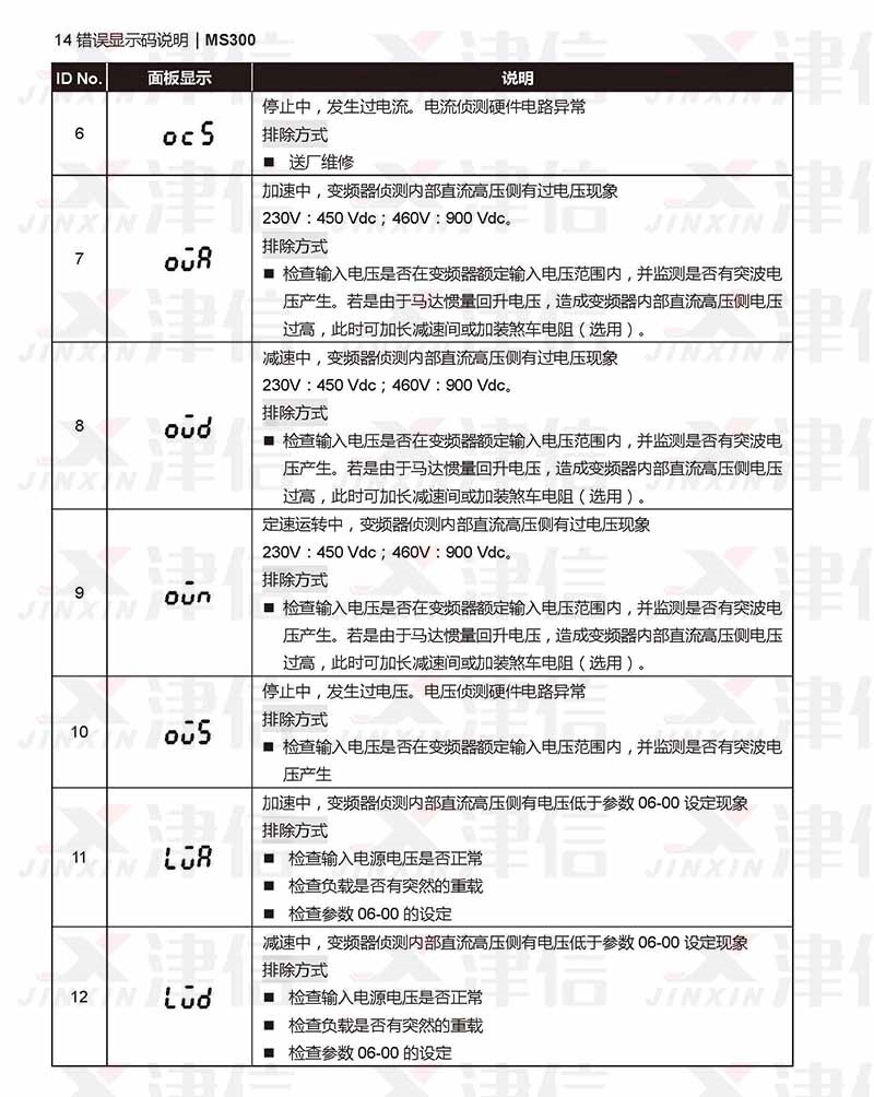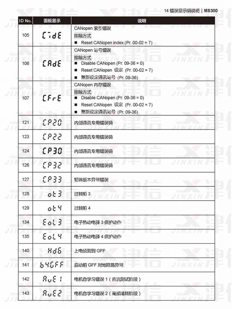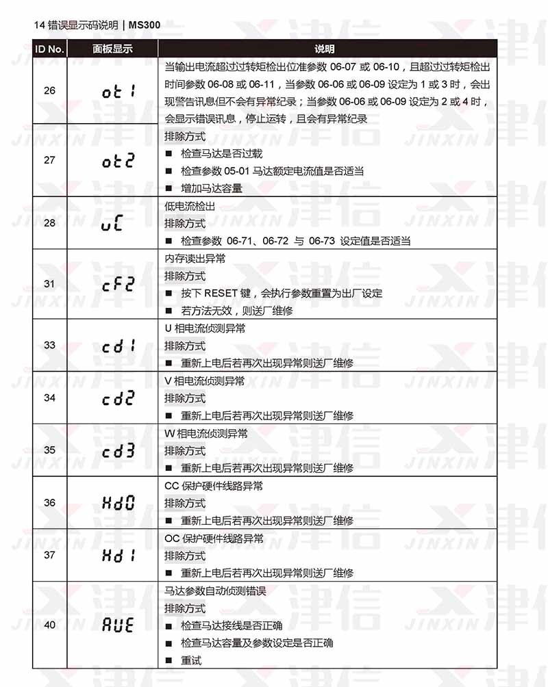 四、臺(tái)達(dá)MS300變頻器ot1,ot2,uc,cf2,cd1,cd2,cd3,hd0,,hd1,aue故障代碼