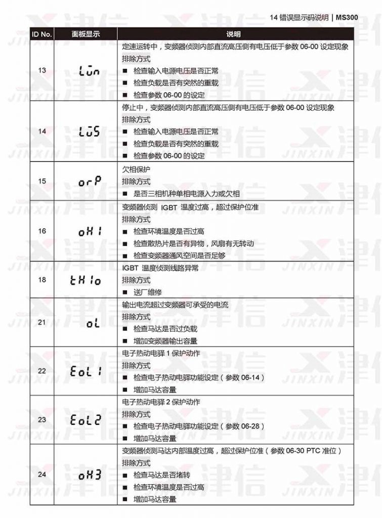三、臺(tái)達(dá)MS300變頻器lun,lus,th1o,ORP,OH1,OL,OH3,EOL1,EOL2故障代碼