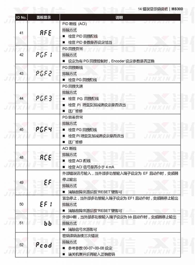 五、臺(tái)達(dá)MS300變頻器EF,AFE,PGF1,PGF2,PGF3,ACE,EF1,BB,PCOD故障代碼